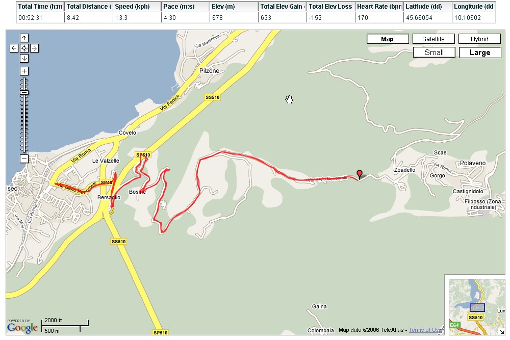 Iseo - Polaveno - Iseo 16,8 km - 17 novembre 2006 - mappa sat.
